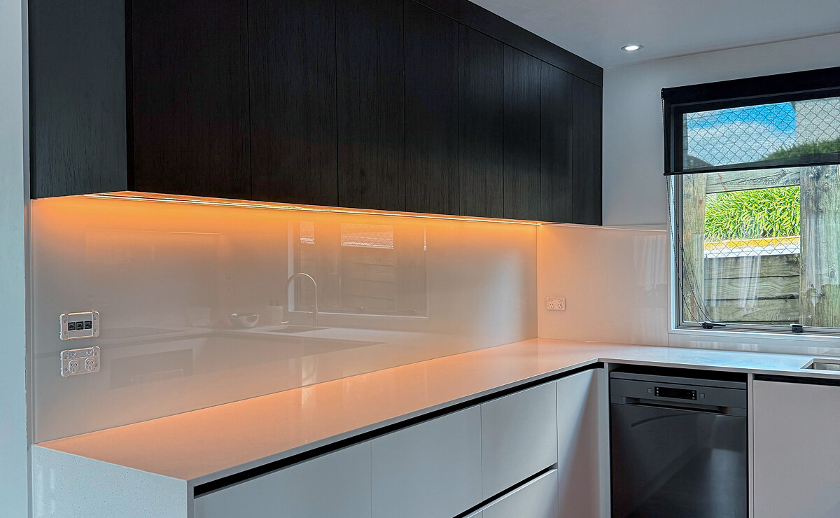 At Glassways, we bring together form, function, and local craftsmanship. All our splashbacks are made with toughened, polished glass, and installed by our experienced Franklin team.
